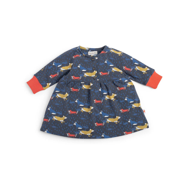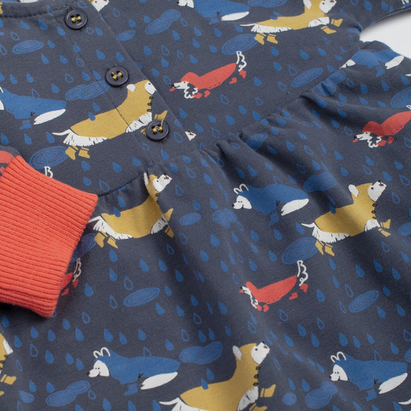 Jersey dress with an all-over dogs in the rain print. Features contrasting ribbed cuffs, carbon finish, and a soft brushed lining for added warmth and comfort.