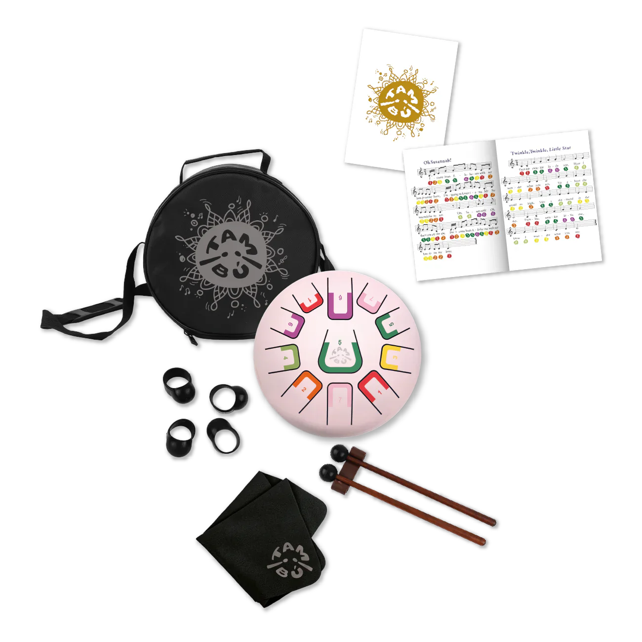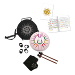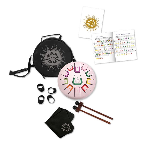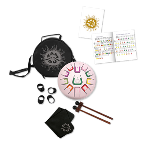 Comes with: Sheet music book, 2 Drumsticks, Cleaning Cloth, Carrying bag