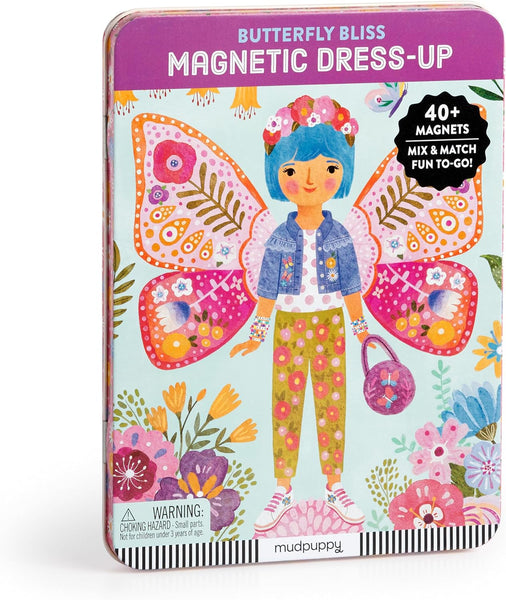 The Butterfly Bliss Magnetic Dress Up from Mudpuppy is the perfect way to experience an enchanting world of fashion and where creativity awaits! With this delightful play set, children can explore their sense of style and imagination as they mix and match outfits for our charming characters and adorn them with colorful butterfly wings. With over 40 magnetic clothing pieces and butterfly wings to choose from, children can unleash their creativity and design countless fashionable looks.