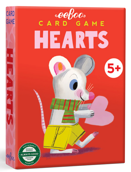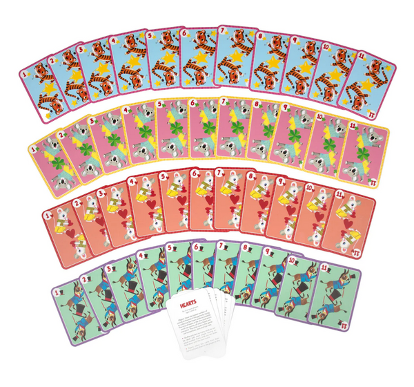 Hearts playing card deck for children and families. A sweet introduction to a classic card game, featuring bright and friendly illustrations.