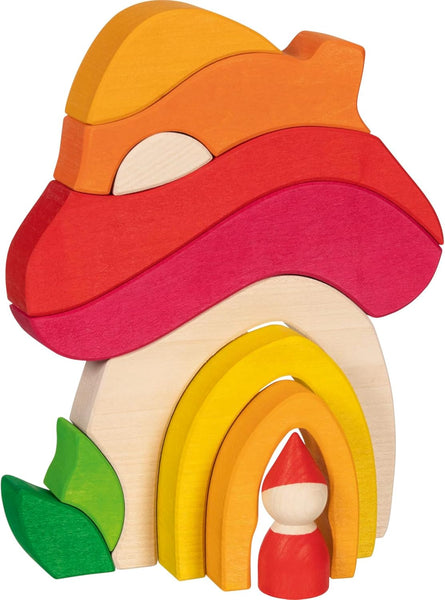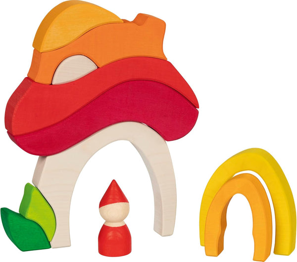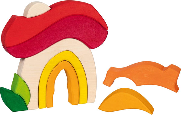 Organic forms form the world of goki evolution. The wooden building blocks promote creativity and free play. A gateway to a world full of possibilities. Do the blocks form a mushroom or a house? Or something completely different? Endless possibility.